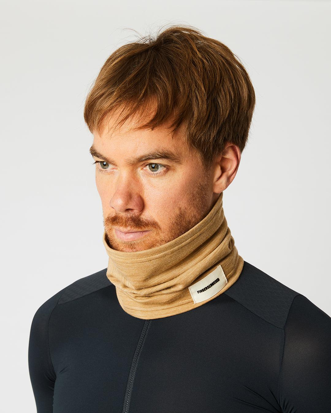Den elastiske pasform omslutter halsen tæt uden at stramme, glider problemfrit under jakke og jersey og kan trækkes op for at beskytte ører og kinder. Den diskrete Camel-tone matcher det meste udstyr og fungerer på både landevej, gravel og MTB.