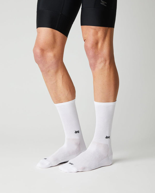 Til erfarne ryttere, der vil have pro-egenskaber i en let og stilren cykelstrømpe. JPG cykelstrømper fra FINGERSCROSSED giver præcis pasform, stabilitet og ventilation til alt fra intensive intervaller til lange bjergdage – med et hvidt, hurtigt look der spiller med enhver sko og hvert sæt.