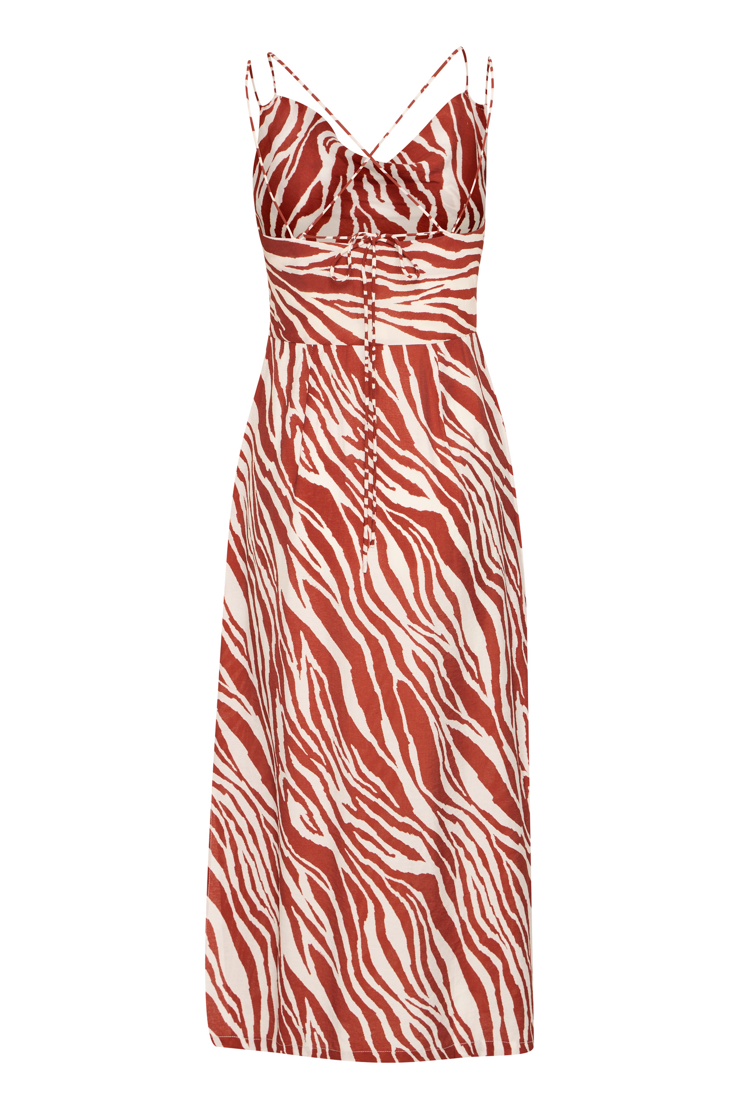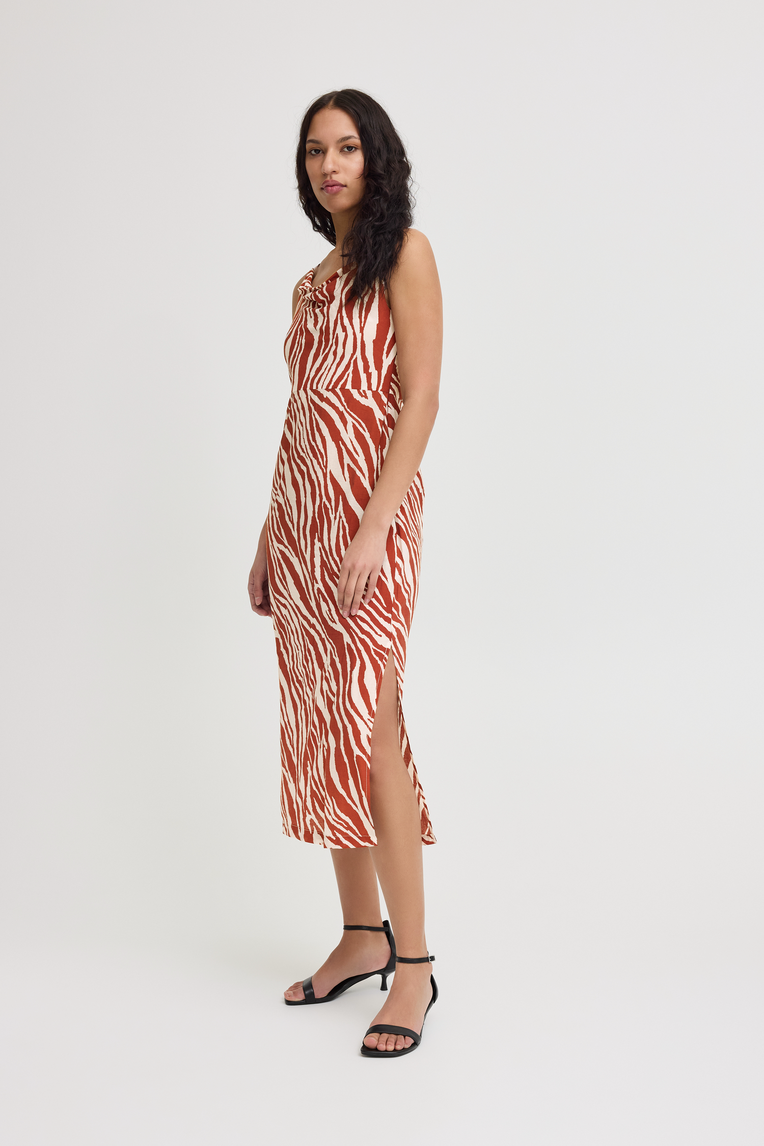 Den perfekte balance mellem komfort og stil med IHYardeen Kjolen fra Ichi. Denne lette og luftige kjole er designet i en smuk Fired Brick Animal farve, har slids ved benet og smukke kryds-stropper ved nakken.