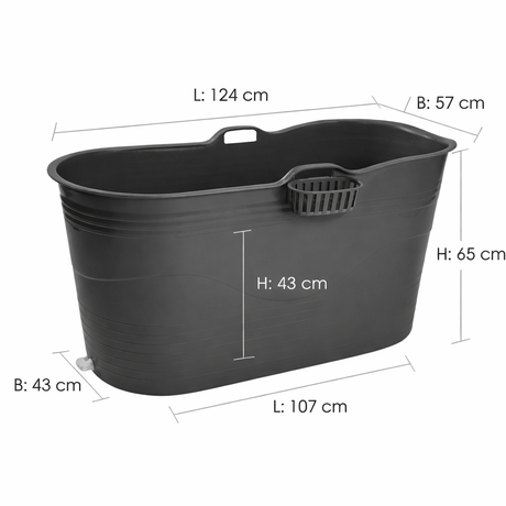 Isbad balje - XL - 123cm - sort - Ekstra kraftig plast og forbedret siddekomfort - Tubfamily®