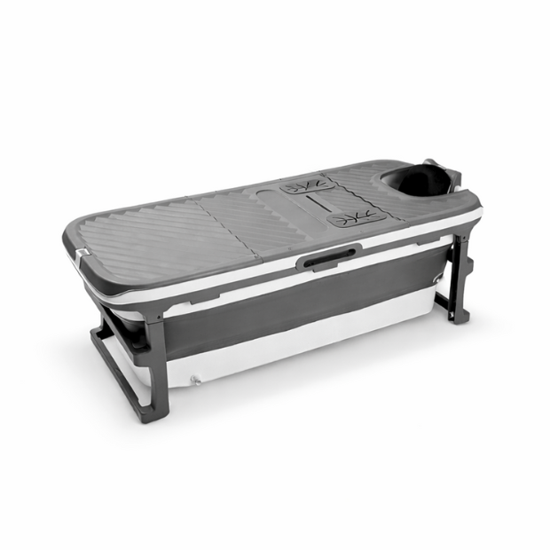 Forkæl dig selv med et afslappende varmt karbad eller et forfriskende isbad i vores stilfulde og rummelige foldebadekar til voksne. Det er designet til maksimal komfort og fremstillet i ekstra slidstærk kvalitet. Og det bedste? Det foldes nemt ud, når du har brug for et luksuriøst bad, og pakkes lige så let væk igen!