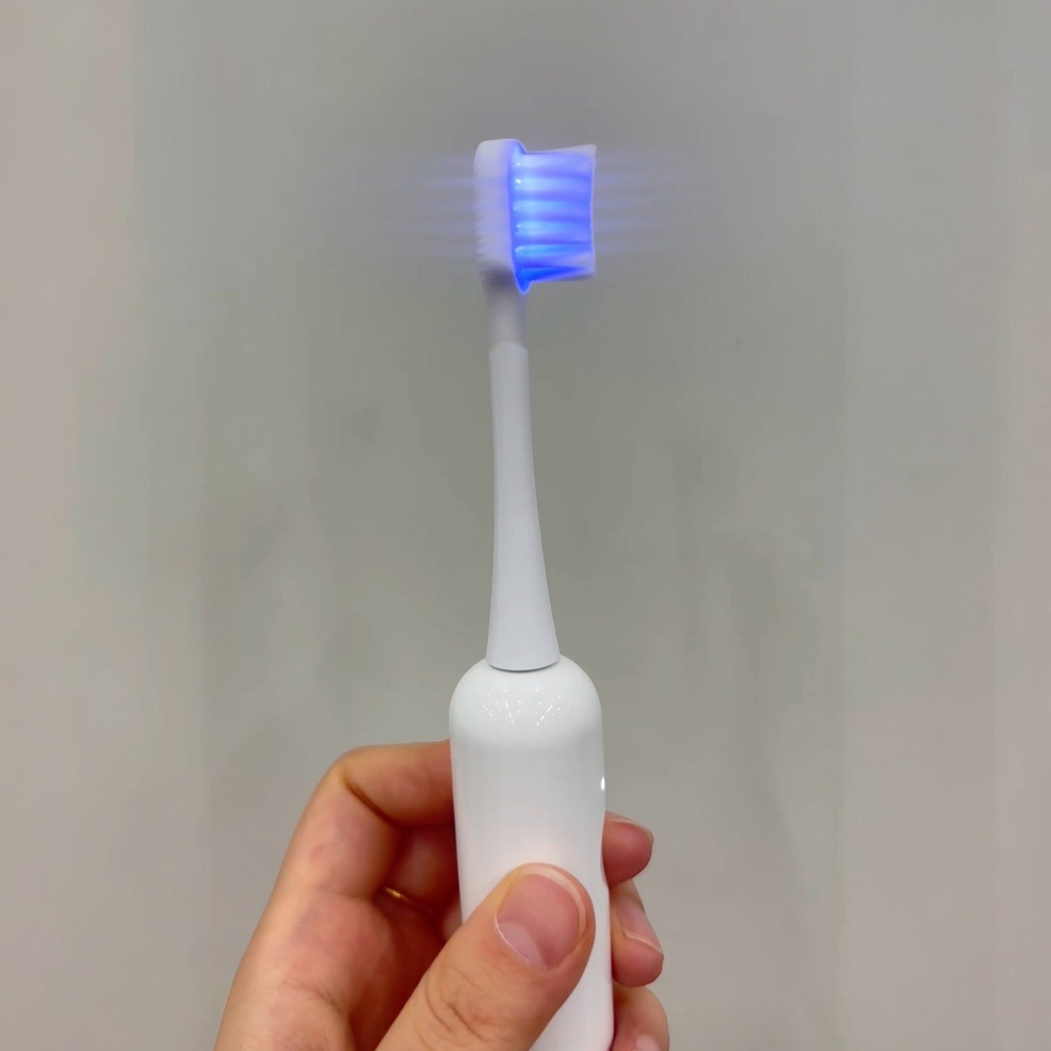 Indbygget blå LED-lys hjælper med at reducere misfarvninger og give hvidere tænder – helt uden kemikalier.